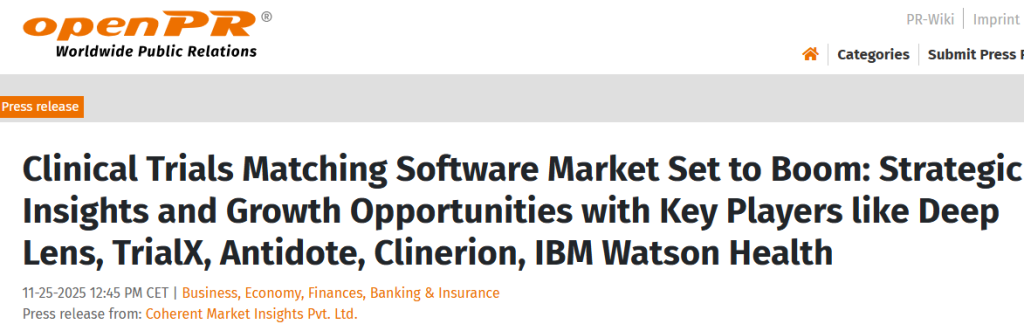 We were featured in a recent industry report on the clinical trials matching software market, which is poised for strong growth as demand for AI-driven patient matching & trial enrollment tools rises. The analysis highlights TrialX alongside other key innovators shaping this market—underscoring the expanding role of advanced technologies in accelerating recruitment and improving trial access worldwide. Read the story.