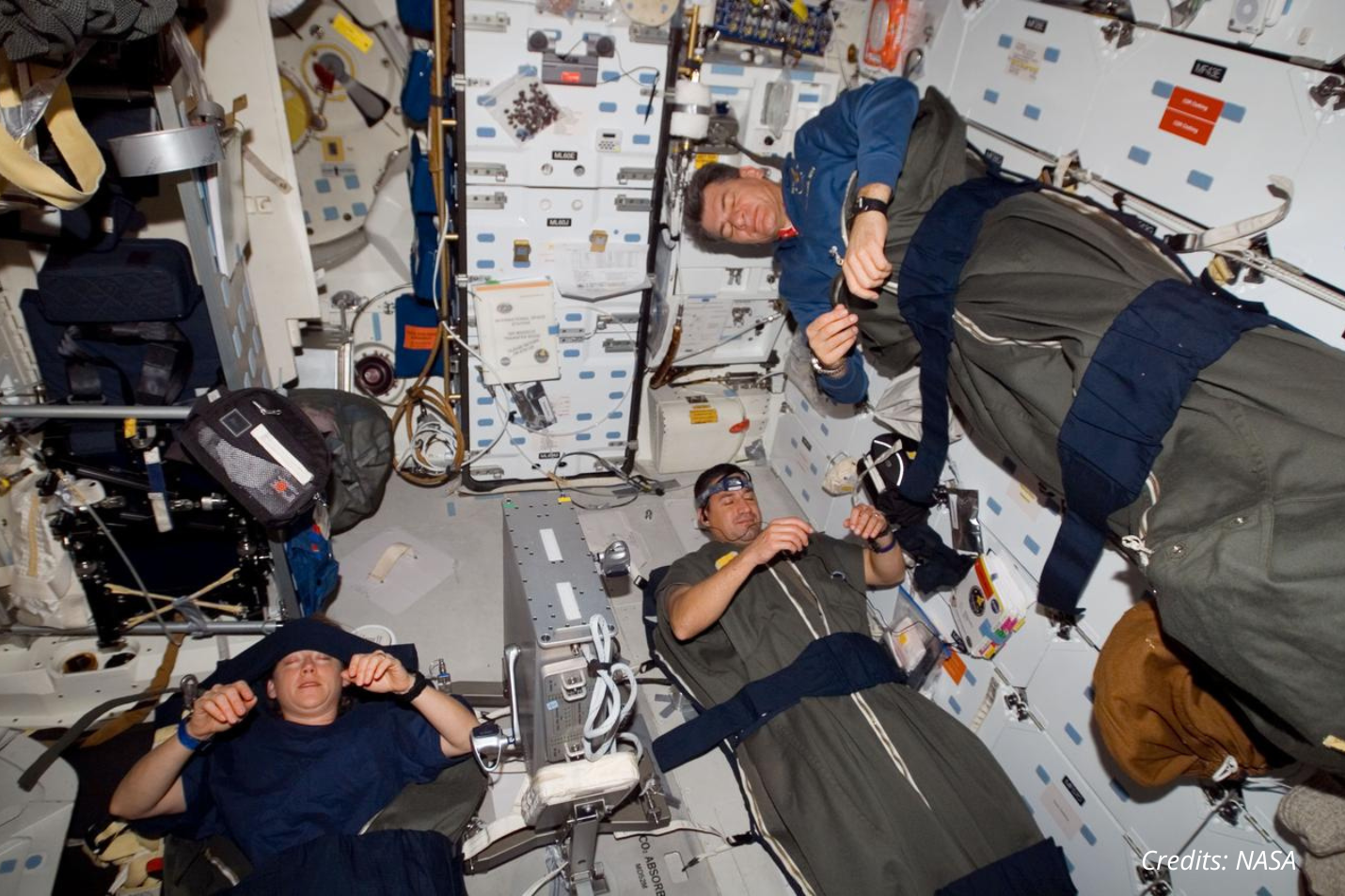 Microgravity adds another layer of difficulty. Floating makes it challenging to find a comfortable sleeping posture. Cramped quarters, constant equipment noise, and the psychological stress of being in a high-stakes environment further reduce sleep quality.Studies also show that astronauts often sleep less than six hours per night during missions.