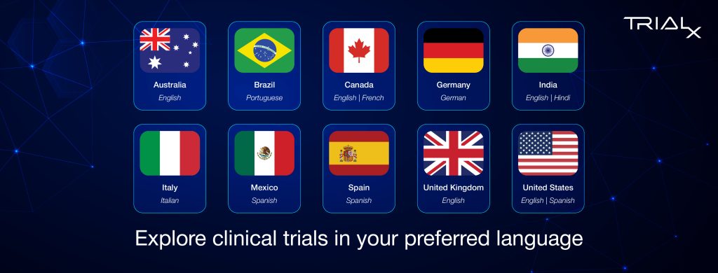 Language should not be a barrier to finding the right clinical trial. At TrialX, we’re making research more inclusive by empowering study teams to connect with participants in up to 10 different languages—bringing clinical trials closer to the communities that need them most. More languages supported means more access. More access means better outreach. Learn how we’re breaking down barriers to boost trial awareness and participation.